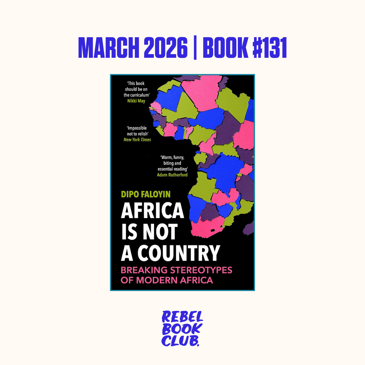 After a month of turning the lens inward, March takes us outward — and wide. The theme is Africa, and members voted for Africa Is Not a Country: Breaking Stereotypes of Modern Africa by Dipo Faloyin, which won with 45% of the votes.